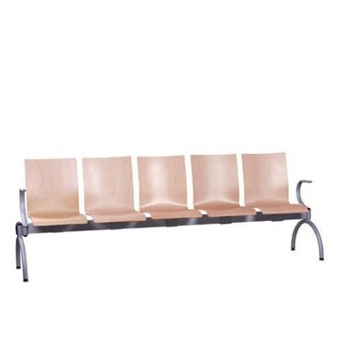 Panca per sale d'attesa 5 posti con braccioli, ideale per uffici, sale d'aspetto, ospedali e studi medici, banche e ovunque ci sia la necessità di posti a sedere in sale d'attesa. Il fusto è in acciaio verniciato colore alluminio, molto resistente e di lunghissima durata. I sedili sono in legno e sono disponibili in moltissimi colori, anche su richiesta. Fate sedere i vostri ospiti su comodi sedili e arredate il vostro spazio con un prodotto professionale!