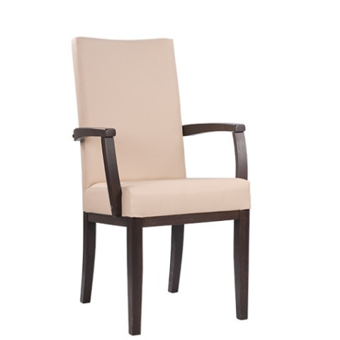 Sedia in legno imbottita, rivestita in moltissimi colori e tessuti/pelli disponibili. Questa sedia trova un perfetto impiego in ristoranti e bar, ma è anche adatta per alberhi o eleganti sale d'attesa.