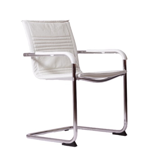 Sedia a slitta, poltroncina con braccioli imbottiti LIANA bianca