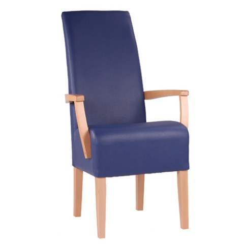 Sedia in legno imbottita, rivestita in moltissimi colori e tessuti/pelli disponibili. Questa sedia trova un perfetto impiego in ristoranti e bar, ma è anche adatta per alberhi o eleganti sale d'attesa.