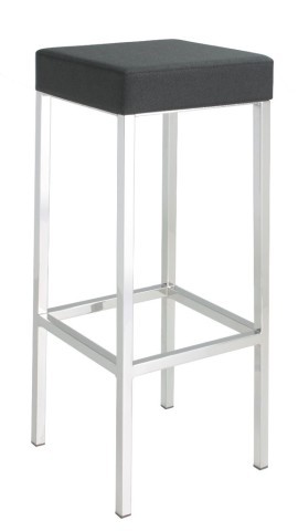 Sgabello da bar in metallo cromato, con sedile imbottito e disponibile in molti colori. Questo sgabello è adatto per un utilizzo nei bar, sale giochi, slotmachines e casinò, hotel e fast food.