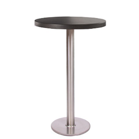 Tavolo alto da bar con base in acciaio cromato rotonda. Piano rotondo disponibile in legno HPL oppure MDF. Elegante e moderno, è un tavolo molto versatile per essere utilizzato in ambienti al chiuso.